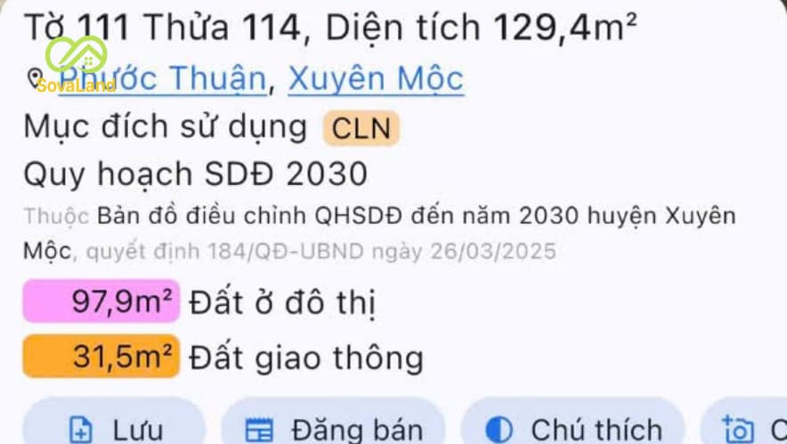 Mặt tiền 9,98m, cách biển Hồ Tràm chỉ 3km, nằm trong khu dân cư hiện hữu.