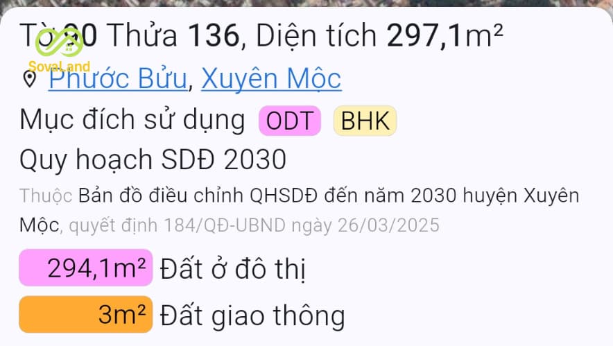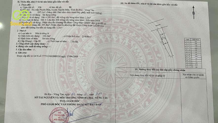 Mặt tiền đường 27/4 – trung tâm thị trấn Phước Bửu, khu vực Hồ Tràm. Diện tích 293m², quy hoạch đất ở, full thổ cư. Trên đất hiện có nhà xây sẵn 1 trệt 2 lầu, có thể khai thác ở hoặc kinh doanh ngay.