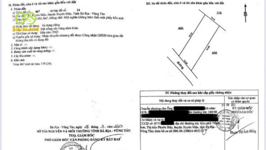 Đất Xuyên Mộc mặt tiền đường nhựa, diện tích khoảng 20 × 55m (hơn 1.000m²).